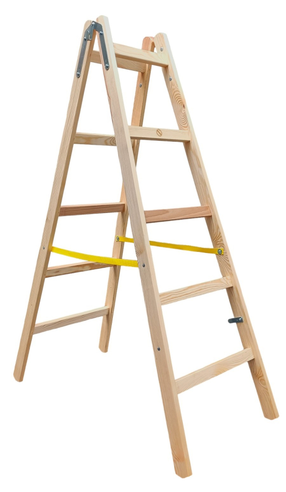 Drevený rebrík dvojdielny /ŠTAFLE/, počet priečok 5, dĺžka 1,66 m, váha 7,8 kg (+/- 10 %) Rozstup horných dvoch priečok je 32 cm, rozstup ostatných priečok je 30 cm. Možnosť dokúpiť gumové pätky, ktoré nájdete v sekcii Doplnky k rebríkom. Možnosť použitia na domáce účely.