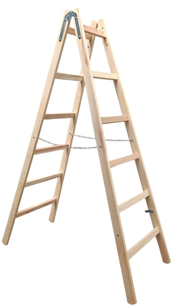 Drevený rebrík dvojdielny /ŠTAFLE/, počet priečok 6, dĺžka 1,96 m, váha 9,5 kg (+/- 10 %) Rozstup horných dvoch priečok je 32 cm, rozstup ostatných priečok je 30 cm. Možnosť dokúpiť gumové pätky, ktoré nájdete v sekcii Doplnky k rebríkom. Možnosť použitia na domáce účely.