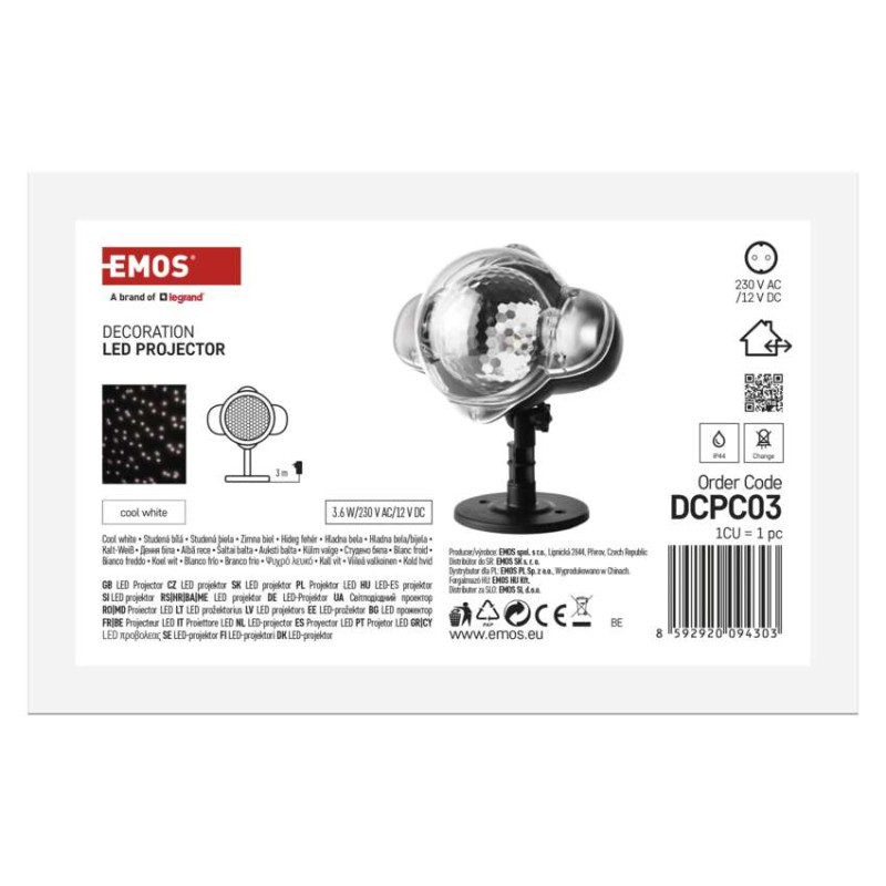 Dekorativní projektor LED - padající sněhové vločky, vnitřní i venkovní, bílý