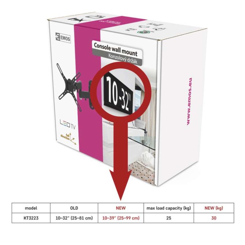 | zaručený rozsah rozteče obrazovky | 10–39" (25–99 cm) |