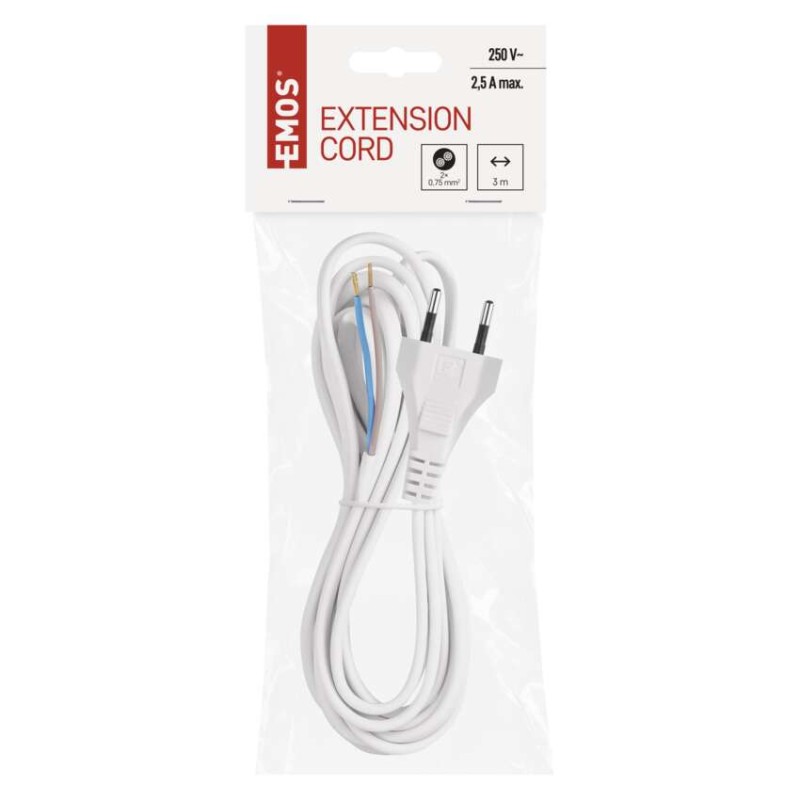 Flexo PVC šňůra 2 × 0,75 mm2, 3 m, bílá