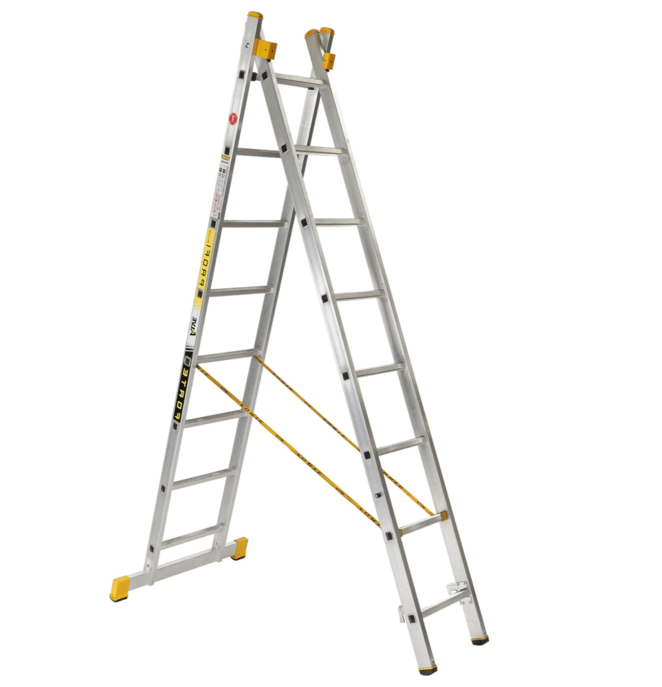 Hliníkový dvojdielny univerzálny rebrík FORTE, počet priečok 2 x 8, max. výsuvná dĺžka 3,83 m a šírka 420 mm. Rebrík možno použiť ako výsuvný rebrík alebo ako štafle. Možnosť použitia na profesionálne účely. Na produkt sa vzťahuje záruka 7 rokov.