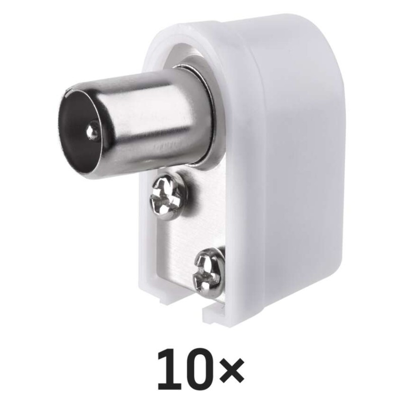 Úhlová vidlice IEC A205 je určena pro připojení ke koaxiálnímu kabelu a má bílou barvu. Prodává se v balení po 10 kusech a je plastový.