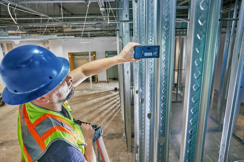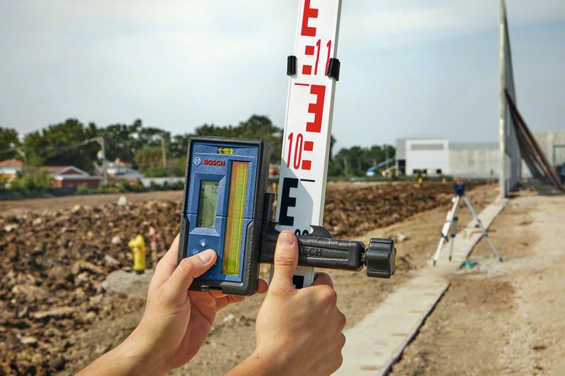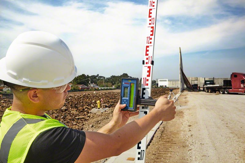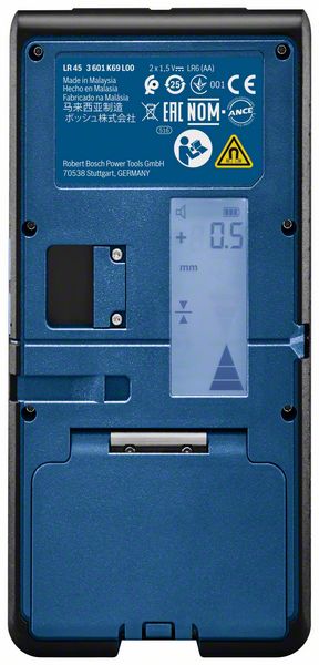 Laserový přijímač LR 45, Robustní laserový přijímač LR 45 Professional umožňuje snadnou detekci zelených a červených laserových paprsků. Dlouhá přijímací plocha přístroje a oboustranně podsvícený displej s funkcí kompenzace mm zaručují bezproblémovou detekci laseru. Vždy připraven pro práci na náročných staveništích: díky ergonomickému měkkému úchopovému povrchu a krytí IP 66 proti prachu a vodě je ideálním nástrojem do náročných podmínek. Šest nastavení citlivosti a tři nastavení hlasitosti (včetně možnosti vypnutí) umožňují snadné přizpůsobení na jakémkoli staveništi. Model LR 45 Professional je vhodný pro vnitřní i venkovní použití a je ideální pro výkopové práce, terénní úpravy, fasádní práce, betonování, instalace HVAC (vytápění, větrání, klimatizace) a další. LR 45 Professional nabízí velký pracovní dosah až 300 m. Integrovaná vodováha ještě více usnadňuje nivelaci.