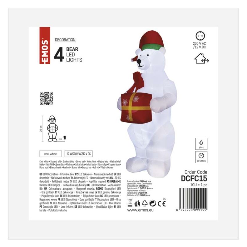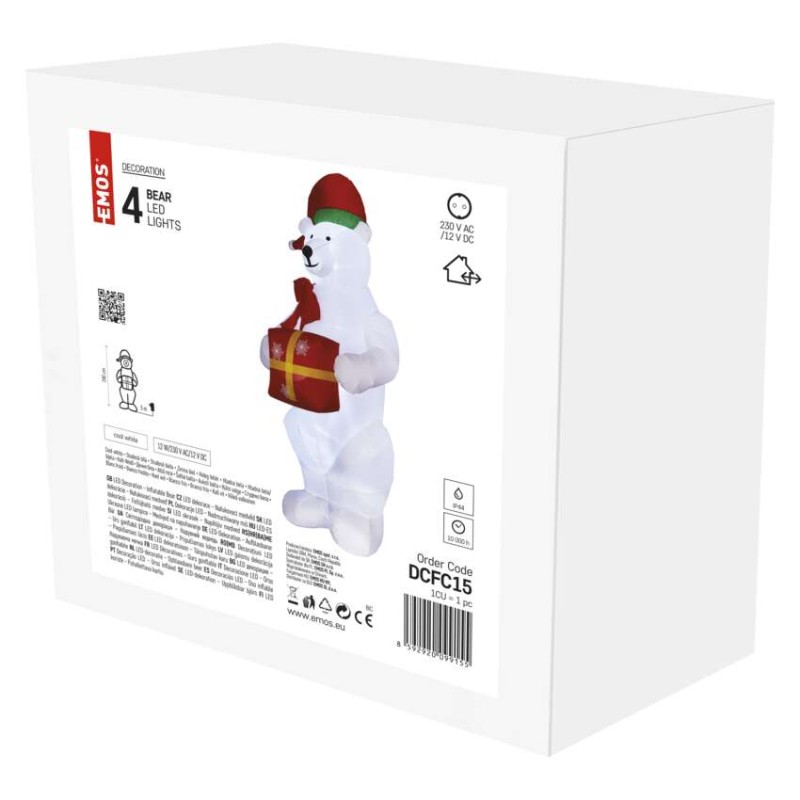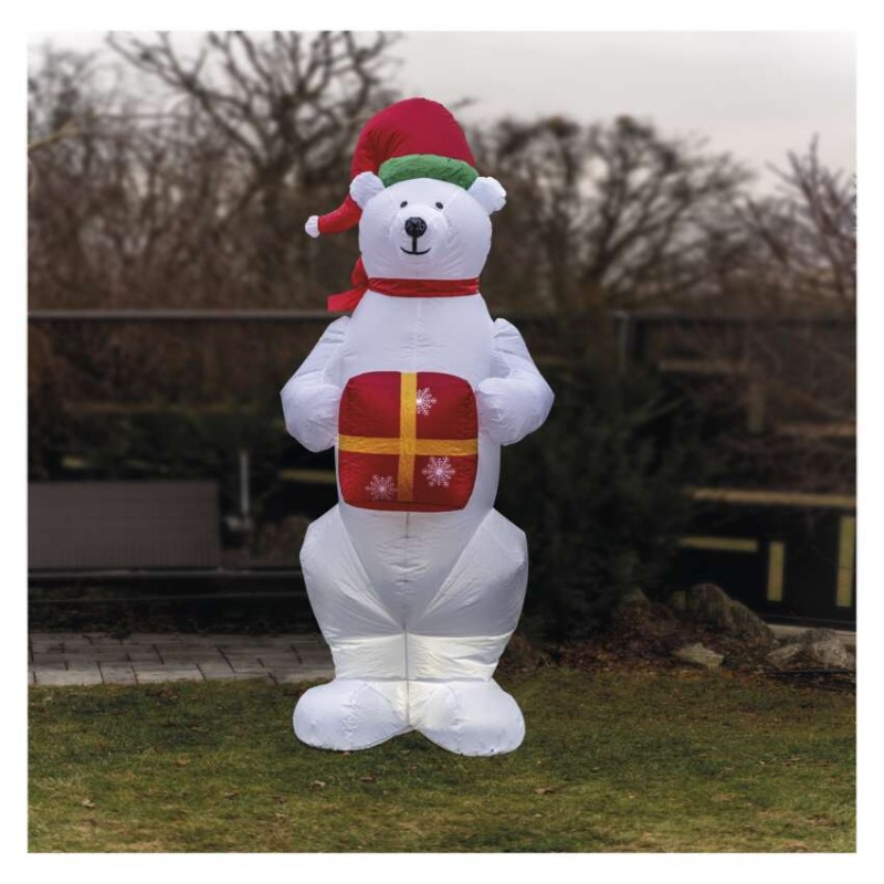 LED lední medvěd s vánočním dárkem, nafukovací, 240 cm, vnitřní/venkovní, studená bílá