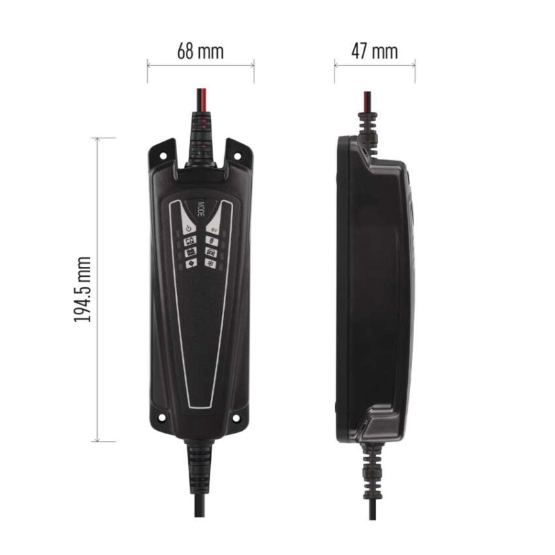 riadené internou MCU, diagnostikuje pripojený aku a automaticky ho nabíja, udržuje, bráni prehriatiu |