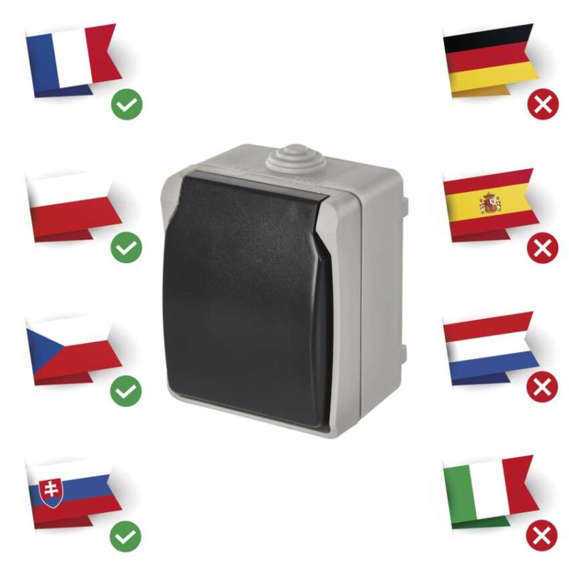 | produkt | zásuvka jednonásobná s ochranným kolíkom a viečkom |