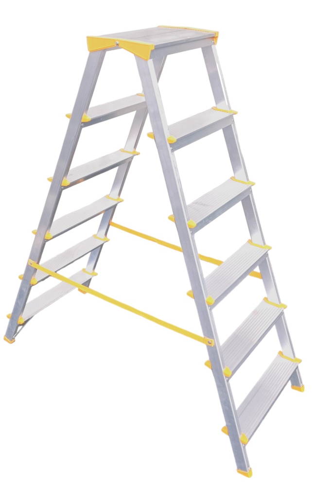 Hliníkové obojstranné schodíky EUROSTYL s integrovaným pántom horných nášľapov, kde nevzniká medzi nimi prázdna medzera, počet nášľapov 2x6 maximálna výška 1,20 m a maximálna šírka schodíka 479 mm. Možnosť použitia na domáce účely.