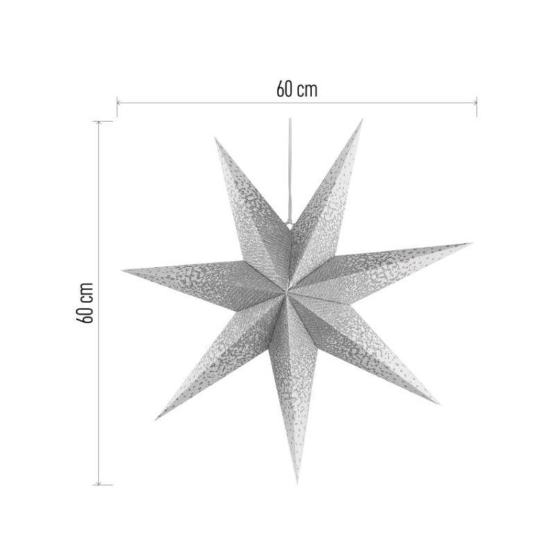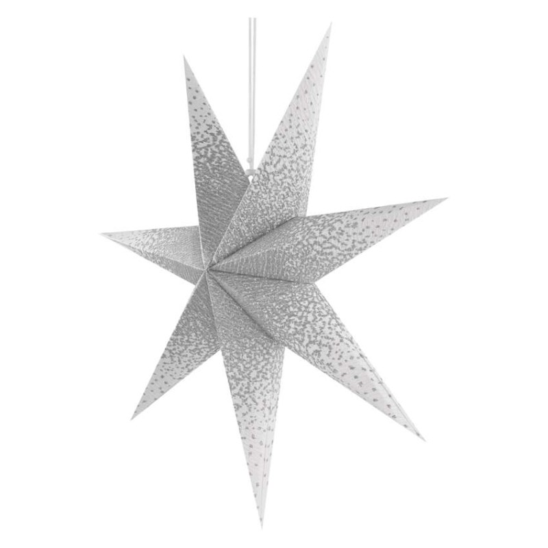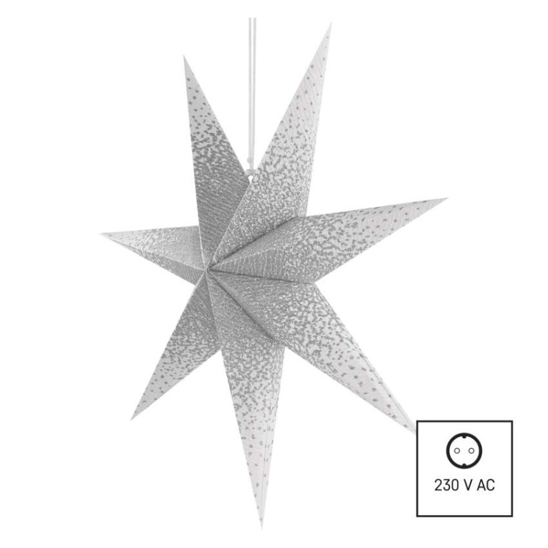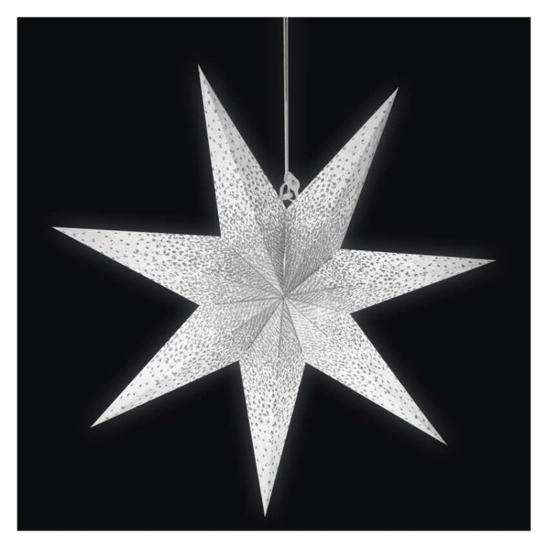 Papírová LED hvězda se stříbrnými třpytkami uprostřed, bílá, 60 cm, vnitřní prostor