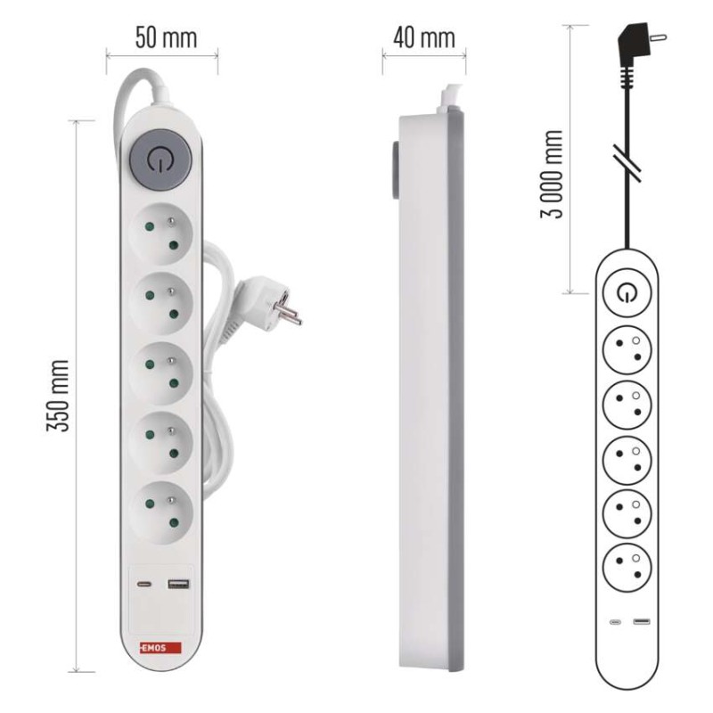 Výstup USB | 1× USB-A, 1× USB-C, total: 3,4 A – 17 W (fast charging) |