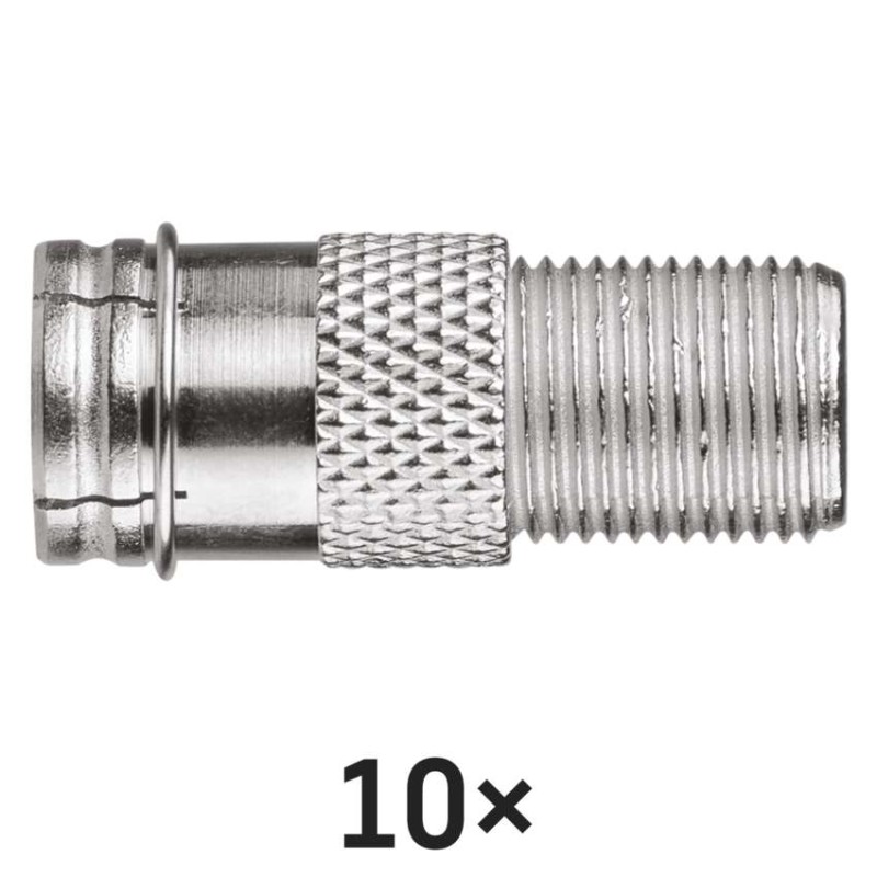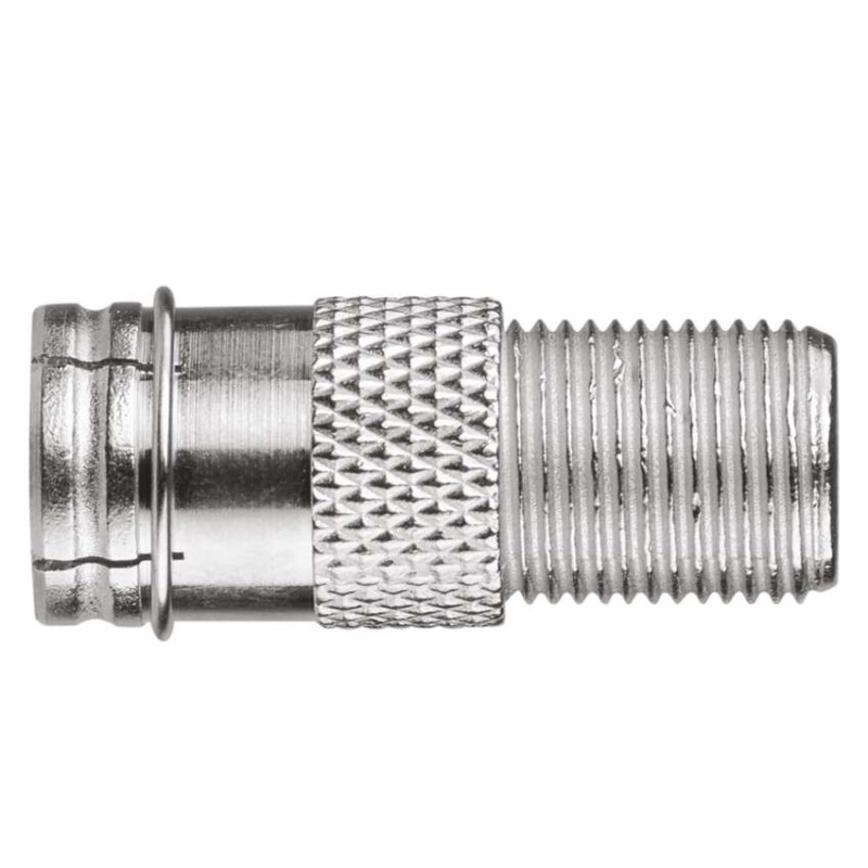 Zásuvka F s vidlicí IEC M5852. Redukce je určena pro připojení ke koaxiálnímu kabelu.