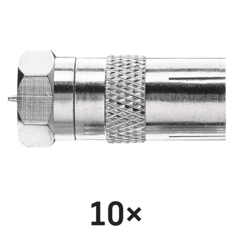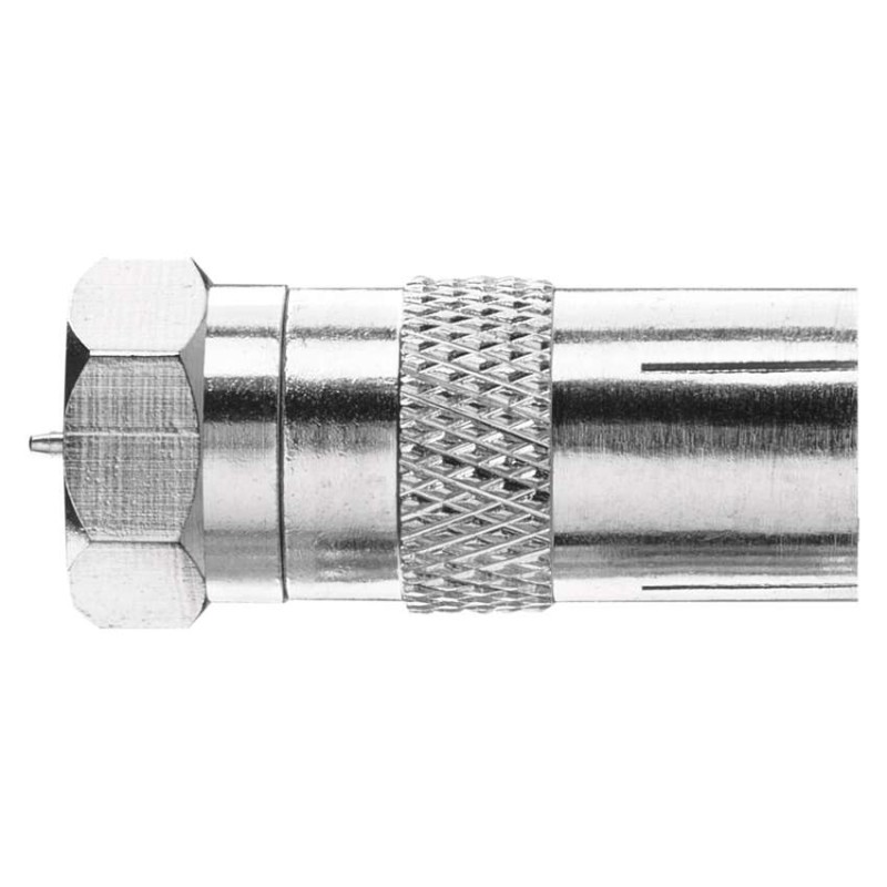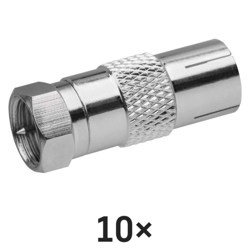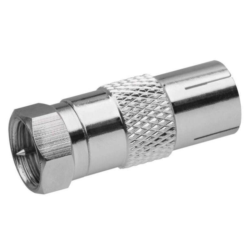 Záložní F-vidlice se zásuvkou IEC M5850. Redukce je určena pro připojení ke koaxiálnímu kabelu.