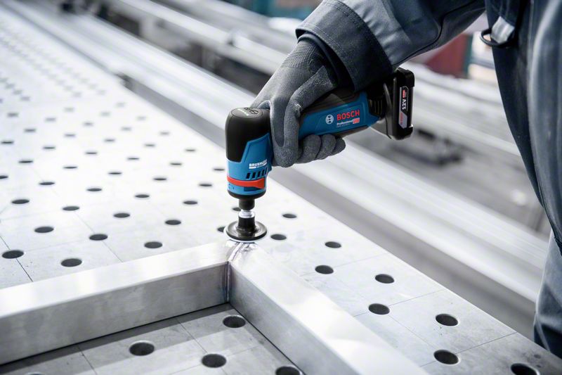 Rotačná brúska GWG 12V-50 S, Vďaka silnému, vysokovýkonnému bezuhlíkovému motoru a vysokému krútiacemu momentu GWG 12V-50 S Professional umožňuje všetky brúsne práce rýchlo a jednoducho. Vynikajúca ergonómia, mimoriadne nízka hmotnosť, kompaktné rozmery a štíhla rukoväť zaručujú prácu bez námahy, a to aj v stiesnených priestoroch. Akumulátorová brúska triedy 12 V so spínačom s variabilnou rýchlosťou a 5 režimami rýchlosti umožňuje vynikajúce ovládanie otáčok na rozmanité práce a optimálne výsledky. GWG 12V-50 S je všestranné náradie na obrusovanie, odihlovanie, brúsenie, čistenie a prípravu povrchov, ako aj odstraňovanie zvarových húseníc a bodov, a to najmä na kove. Je kompatibilná s rozličnými brúsnymi kotúčmi priemeru 50 mm dostupnými na trhu a klieštinami priemeru 6 mm aj 8 mm. Takisto je vybavená inovatívnym používateľským rozhraním s indikáciou rýchlosti a nabitia akumulátora. Upínacia klieština s presuvnou maticou 6 mm (2 608 570 084); Kľúč na skrutky; Kartónový box