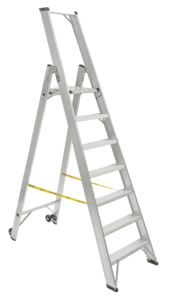 Jednostranné hliníkové schodíky FORTE, počet nášľapov vr. plošinky 1 x 7 , rozmery plošinky 305 x 290 mm, max. výška plošinky 1,48 m a šírka 594 mm. Možnosť použitia na profesionálne účely.Na produkt sa vzťahuje záruka 7 rokov.