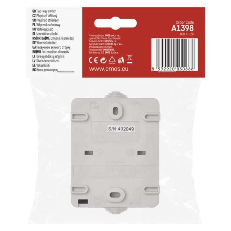Schodišťový nástěnný spínač č. 1,6 IP54, 1 tlačítko