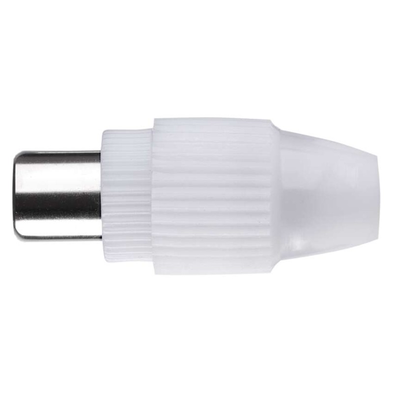 Konektorová vidlice IEC je určena pro připojení ke koaxiálnímu kabelu a má bílou barvu. Prodává se v balení po 10 kusech a je plastový.