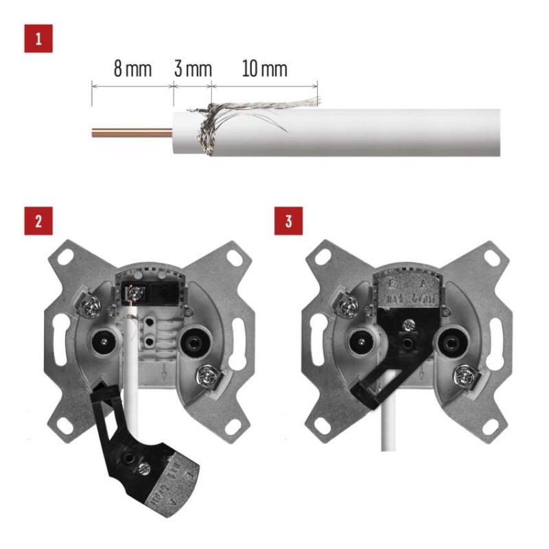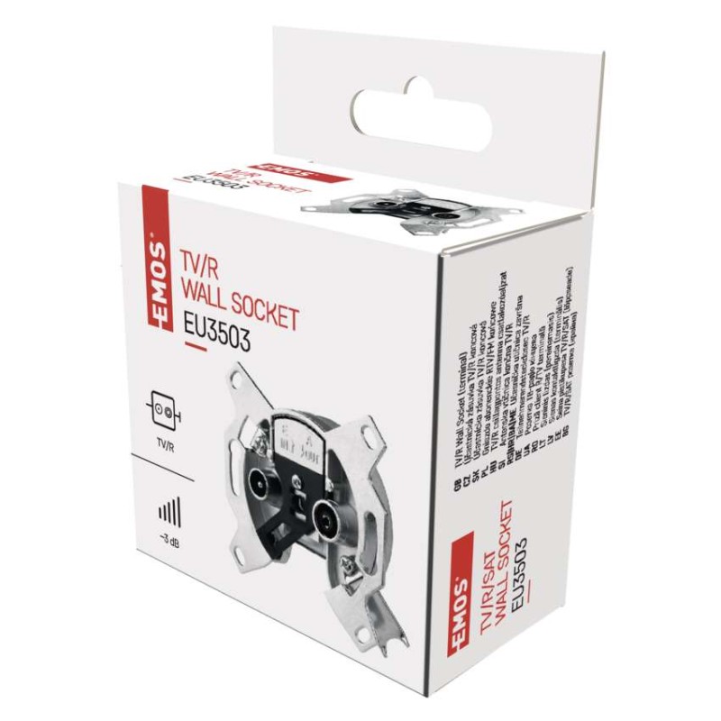 Síťová zásuvka EU 3503 s útlumem 3 dB a zásuvkami pro TV + rádio. Účastnická zásuvka slouží k připojení např. antény k televizoru, satelitu, set-top-boxu, internetu nebo telefonu. Zásuvka není průchozí pro stejnosměrné napětí.