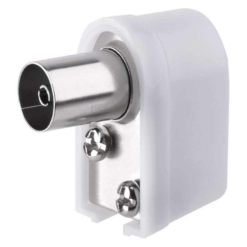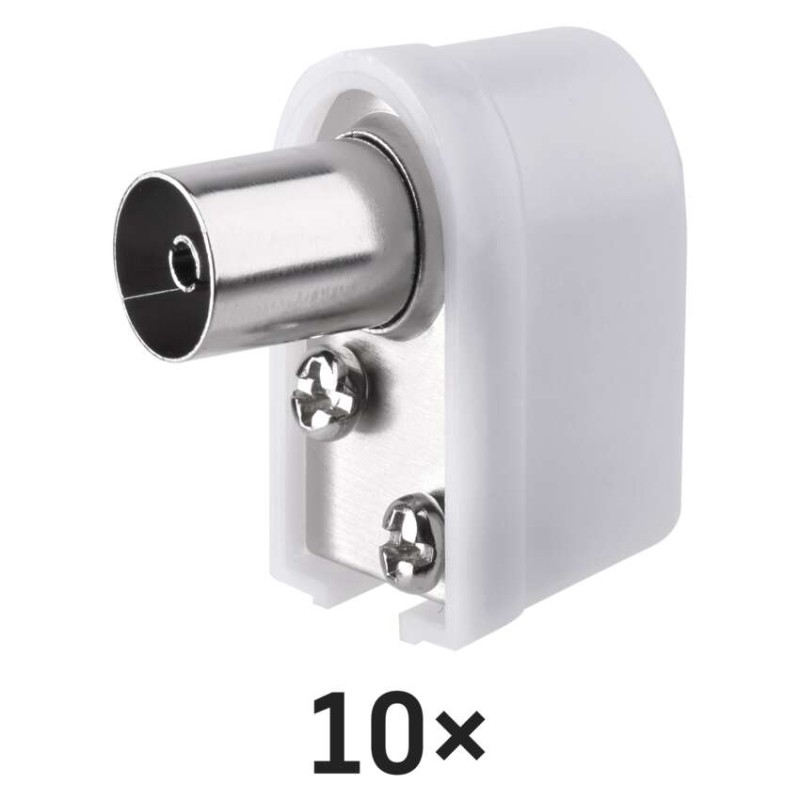 Úhlová zásuvka konektoru IEC je určena pro připojení ke koaxiálnímu kabelu a má bílou barvu. Prodává se v balení po 10 kusech a je plastový.